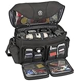 Have been able to my Canon 20D, 70-300mm lens,Canon Elan,70-280mm lens, a 50mm lens, 580 and 430 flashes, Turbo Z,Epson P2000, all of chargers into the main compartments. Multiple cables, extra batteries, manuals, cleaning gear, and everything else required for a shoot. Love the room and all the little small pouches to stash stuff in. Only minor complaint is the number of zippers and buckles needed to access main bag. But I am anal and always zip and snap them and will never pick my bag up and have all fall out. Price was unreal. Buy it.Find helpful customer reviews and review ratings for Tamrac 5612 Pro 12 Camera Bag (Black)