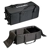 It's a nicely made bag and made of quality material. I purchased it to travel and carry my equipment but after receiving it it was really bigger then I realized!I had purchased the Super Coolite 5 lighting equipment from Interfit. I was disappointed that it did not include a bag, which is a must have and should be included, shame on Interfit. They do sell seperately of course the Interfit INT437 bag which is specifically designed for this lighting equipment. Everything fits very nicely. There are two levels to the bag. At the bottom of the bag are four flexible straps that are designed for the two tripods that come with the Super Coolite 5 lighting system. The straps fit very snug around the tripods. No sliding around in the bag. I placed the power cables, softbox rods, softbox covers, external softbox covers in this section as well. I also placed my own circular reflector there as well. I also should have enough room for my camera tripod as well. The floor of the second level is then placed over the bottom section and is attached with velcro. On the upper level there is a padded divider secured with more velcro with the flexibility of three different areas it can be placed. On the right I placed the two high contrast metal reflectors. The fit is secure with very little lateral movement. On the left I placed the light bulbs. I kept the plastic casing, (which easily snaps open) with the thin paper material around it. I also kept the original shipping cardboard frames for the light bulbs which give you additional padding for the fragile bulbs. The fit was perfect, almost like it was designed to store the light bulbs in their original packaging. Below the light bulbs I placed the two Super Cool Lite 5 Heads. I secured bubble wrap around them to give them some extra protection, although the box seems to be padded fairly well. I just like the extra insurance of extra padding. There is black secured cover split in the middle that connects with velcro that covers the top section. The zipper works well. The wheels appear sturdy enough. Straps appear strong. So far the bag has been great and for the priced I paid $47.00 compared to the $97.00 MRSP is a bargin!