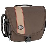 I really like the dark brown color too!I bought this for my Olympus E-PL2 mirrorless camera and the 14-42mm & 40-150mm lenses based on Tamrac's fit chart. Well, it works, but it's snug. Have to store the camera with the 14-42 attached and the other lens separate, can't do the reverse. As far as quality and design, it's very well-made and easy to carry. All in all, I like it and it's a keeper, just wish it had a tad bit more room. One more thing, the bag is BROWN/tan, as in much browner than what is shown, but looks great nonetheless.