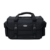 This is a good bag for the price, it holds all I need for my DSLR and then some, but is rather bulky. I should have expected this by the dimensions, but when it came time to carry it I found it rather cumbersome. What's more, the interior padding is filled with air, a good method overall but I find mine "squeaks" as I walk around with it. But I do like that it has more space for my camera accessory collection to grow, and the compartments inside the bag are interchangeable, with plenty of inserts to separate different components. Absolutely LOVE this camera bag! I needed a wellpadded, larger bag for my equipment to take on an extended trip to Africa. This bag went over above my expectations. It had plenty of room for my lenses, chargers, manuals, and plenty of extras that kept me from having to lug so many extra bags around. I am new at photography and don't have alot of pieces yet, but this nag had room for my collection to grow. I really have found no cons at this time!!