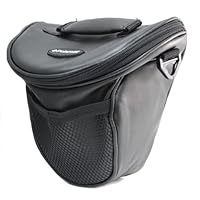 At this time, the same Polaroid Studio Series SLR/DSLR Holster case shows up in at least seven different offerings on amazon.com with none costing more than $15. This is unusually low for any type of holster case. The case is listed as being suitable for many different medium/small DSLRs and compact micro-four-thirds cameras. From the case measurements given in various case descriptions, it is difficult to determine how well various cameras will fit. I was hoping that this case would be small enough for my compact Panasonic DMC-GF3 with short zoom lens. From other reviews, it appeared that this case would be suitable for larger cameras, such as the Fuji HS20EXR, which I also own, so I ordered the case.The Polaroid case has a plastic exterior with the look and feel of leather and the interior is a cloth fabric over about 1/4 inch of protective foam padding throughout. This makes the case rigid enough to hold its shape, but flexible enough to conform to most cameras and keep them safely restrained. A shoulder strap is provided and there is a carrying handle on the case cover. There are also two loops on the back surface to carry the case on your hip by attaching it to your belt. The case is a little large for carrying on you belt, but this is a very convenient way to be hands-free when the camera is not in use, but easy to retrieve when ready to take pictures. The droop cover of the case makes it easier to quickly insert and remove the camera. The assembly quality is excellent and amazingly good for such an inexpensive case. The listed interior dimensions of 6.7"x3.6"x6.7" are close to reality, but the sloping sides of the case and the drooping top cover reduce this somewhat. The maximum useful depth of the case is more like 6 inches, so cameras with long zoom lenses will not fit.