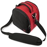 I got this bag for my new Nikon D3100 and it's great! Fits the camera perfectly and the back pocket holds an extra memory card and the lead with room for a bunch more if needed. This is exactly what I wanted and the red color is great too.
