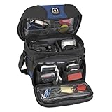 This is an excellent bag for those looking for one bag to carry both a digital camera and a digital camcorder... not too bulky and lots of pockets for accessories. My Sony Mini-DVD camcorder and my Sony DSC-H5 camera(with hood attached) are both protected in this bag with room to spare. Pockets can hold several Mini-DVDs, extra battery, travel battery charger and USB cable, with room still for cleaning cloths and filters. The slide pocket is a fantastic idea and can hold 8 AA batteries and memory cards. I did a lot of research and measuring before coming across this bag. I am very happy with it and it fits my needs to a T. If you're looking for a even bigger bag to carry AC adapters you can check out the Tamrac System 3. If you're looking for less bulk without sacrificing storage space, this could be the bag for you.