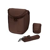 It fits well NEX 6 camera with the lens. Just the right compact size to carry either on its strap or in the hand luggage.The first thing that I expect from a case for a relatively expensive digital camera is to be protective, then the design, color, price and etc. come after that. This case's material is good for the small and light point-and-shoot cameras but for the DSLRs this type of material is not protective and the camera would be at the risk of damage.